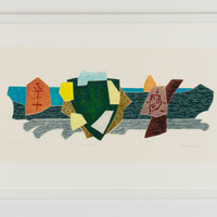 - Multicoloured abstract print of woodblocks with texture in a horizontal formation