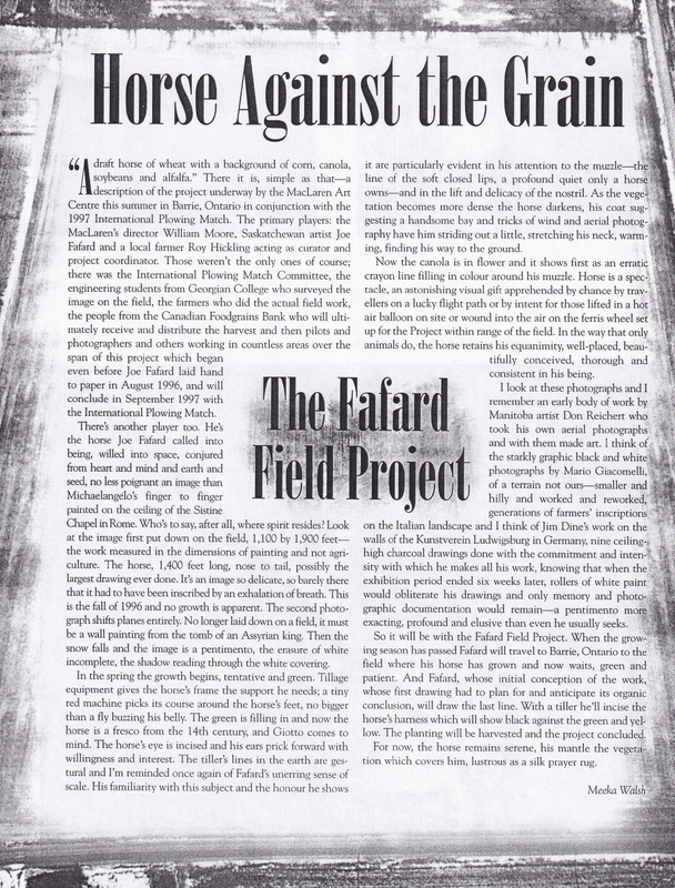 Press, newspaper articles in Joe Fafard files