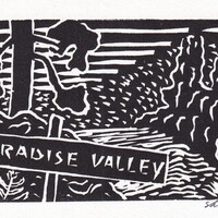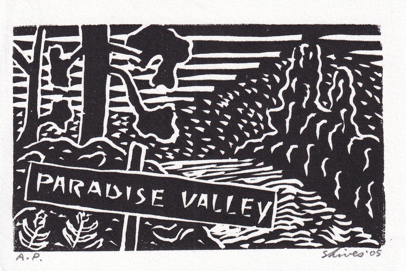 - Paradise Valley relief print by Arnold Shives in files - likely made during Paradise Valley Summer School of Visual Art in 2005