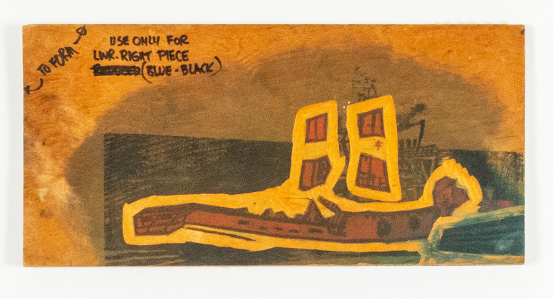 - Woodcut block #2 (block 2 of 2) -Red tug (Double sided block with AA002.3 on the other side) 11.5" x 24.5"